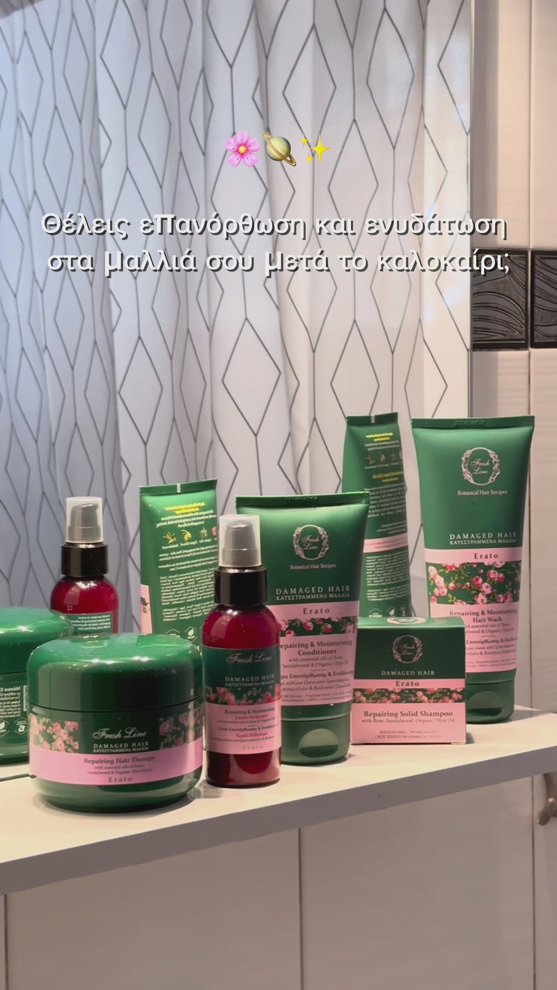 Infused with organic olive oil, rose and sandalwood essential oils, and provitamin B5, it restores moisture, strengthens, and revitalizes damaged hair, leaving it soft and radiant.